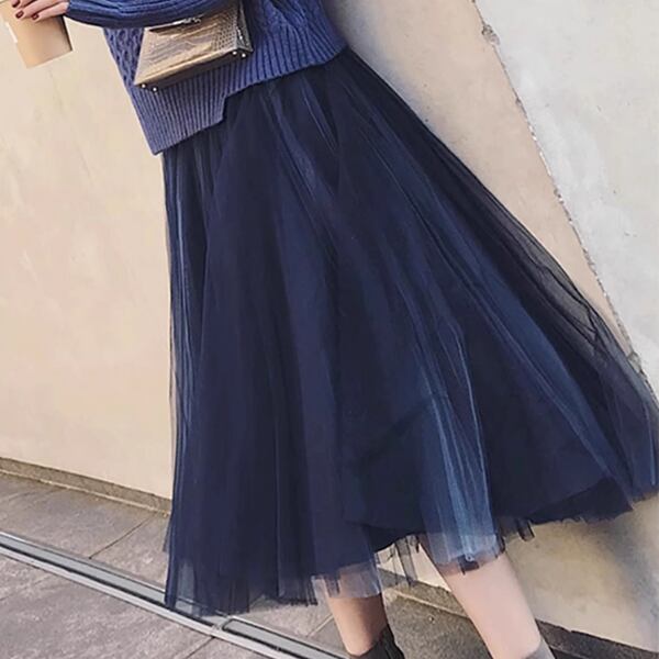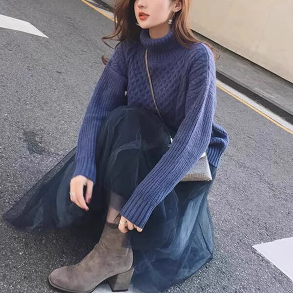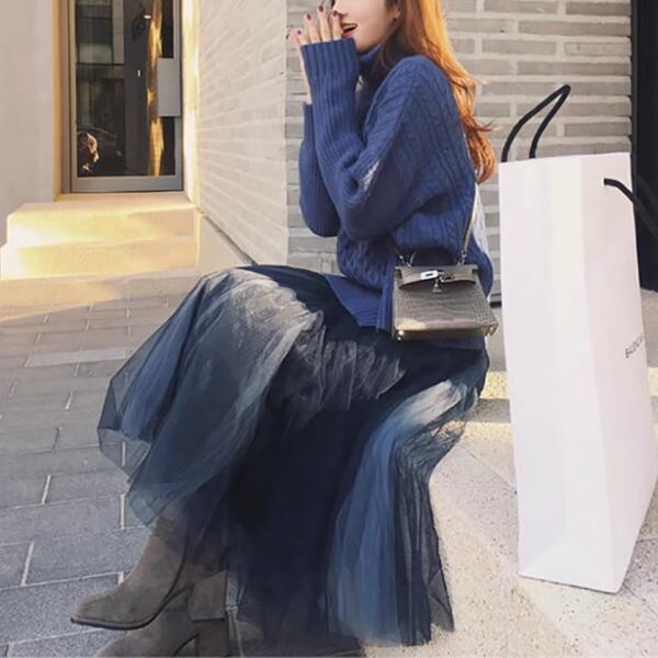 秋のおしゃれを手軽に完成させる上下セット。セーターとチュールスカートの2点で、ホットなレイジースタイルを演じるのはいかがでしょう。メッシュロングスカートが軽やかで、ニットセーターは温かい。秋のトレンドを取り入れたおしゃれなコーディネートが完成します。