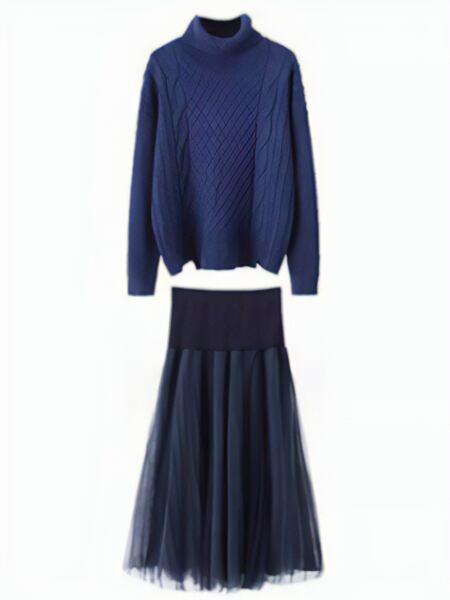 二点セット ニットセーター&メッシュロングスカート 上下セット スーツ風 ホットスタイル レイジースタイル レディース スカート トップス ニット セットアップ アウター ツーピーストップス 膝下 ロング 長袖 萌袖 タートルネック フレア 細身 ストレート Aライン シフォン 透け感 伸縮性 ケーブルニット リブニット 大人可愛い きれいめ カジュアル 上品 おしゃれ モード系 エレガント フォーマル オフィスカジュアル 無地 春 秋 プレゼン 10代 20代 オフィス 通勤 イベント カフェ