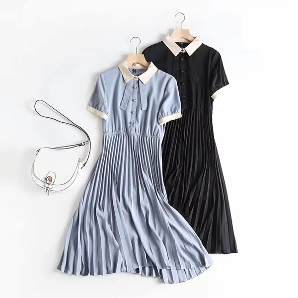 夏にぴったりな、カレッジスタイルのプリーツスカート付きシフォンドレス。軽やかなシフォン素材で涼しげな着心地を提供し、プリーツスカートがエレガントな雰囲気を演出。夏のファッションにアクティブなスタイルを取り入れたい方におすすめです。