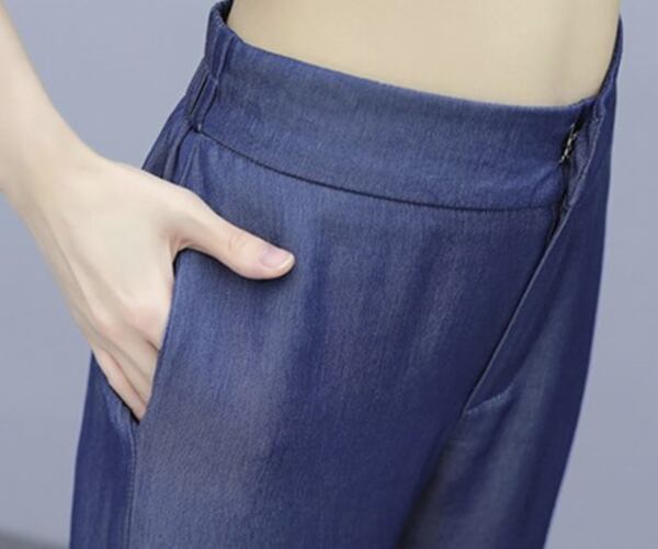 夏にぴったりのカジュアルなデニムツーピースセット。ノースリーブのトップスとドレープが美しいワイドレッグパンツがセットになっています。涼しげな着心地で、さりげないおしゃれを楽しめます。