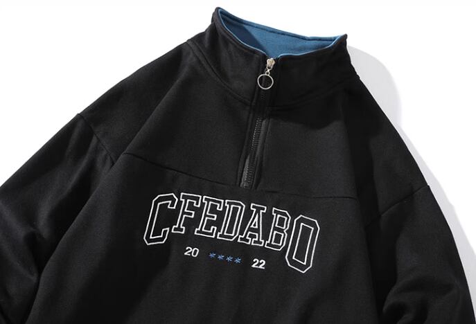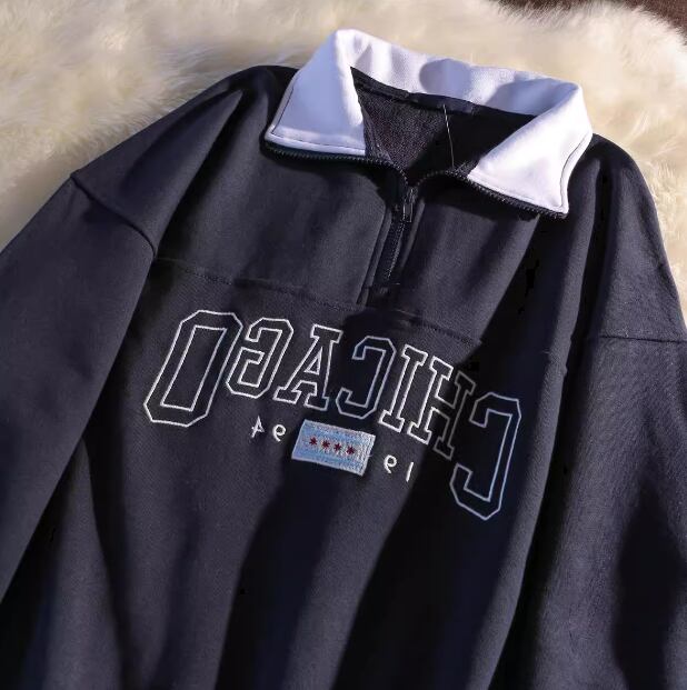 レディース トップス プルオーバー パーカー スウェット ミドル丈 ドロップショルダー 襟付き スタンドカラー ポロカラー ストリート ヒップホップ 刺繍 ファスナー 異国風 カジュアル おしゃれ かっこいい レトロ メンズライク ボーイッシュ スポーティー ルーズ クール アメリカン ハンサム 文字 テキスト 英語 秋 デート お出かけ 普段使い 着回し トレンド 流行 M L XL 大きいサイズ ゆったり ゆる 大きめ オーバーサイズ ネイビー