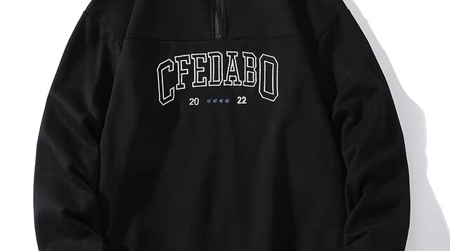 シックなネイビーの色味とアメリカンなデザインがかっこいいハーフジップタイプのプルオーバーパーカー。