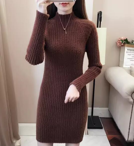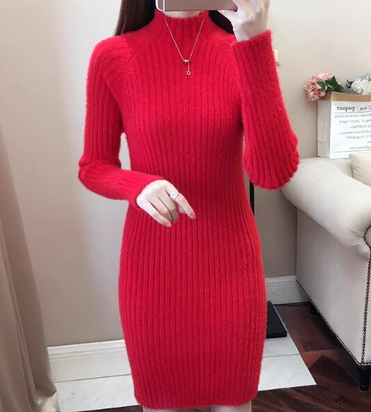 レディース ワンピース プルオーバー ニットワンピ 膝丈 ミドル丈 長袖 ハイネック タイト スリム 細身 フェミニン 厚手 ベルベット かわいい 大人可愛い きれいめ シンプル カジュアル 上品 おしゃれ かっこいい こなれ感 クール エレガント ラグジュアリー セクシー 無地 秋 冬 デート お出かけ 暖かい 普段使い S M L XL 大きいサイズ 小さめ フィット ブラック ブラウン オフホワイト レッド