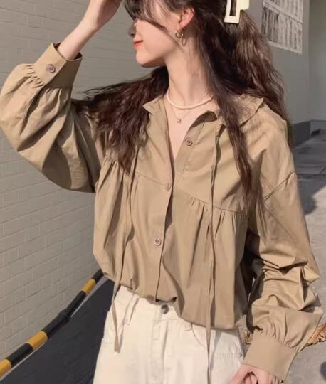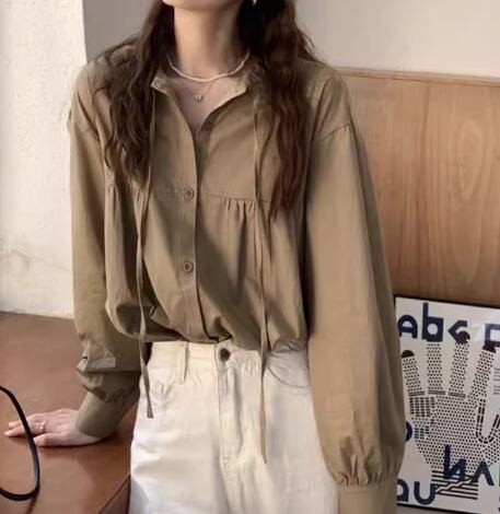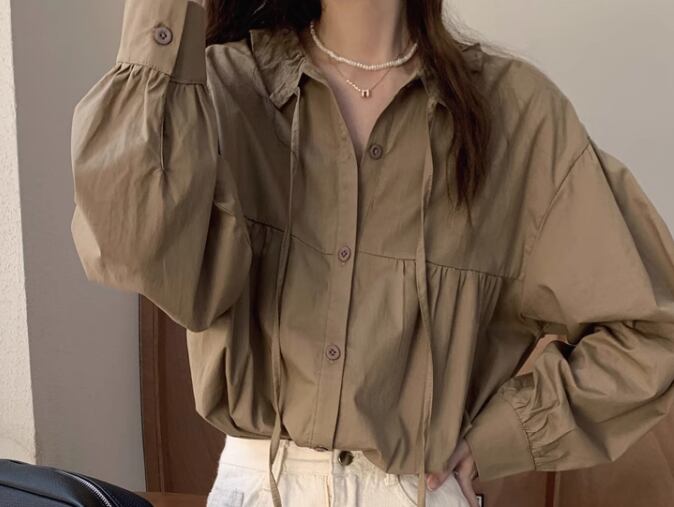 上品で落ち着いた色味が大人っぽい長袖シャツ。