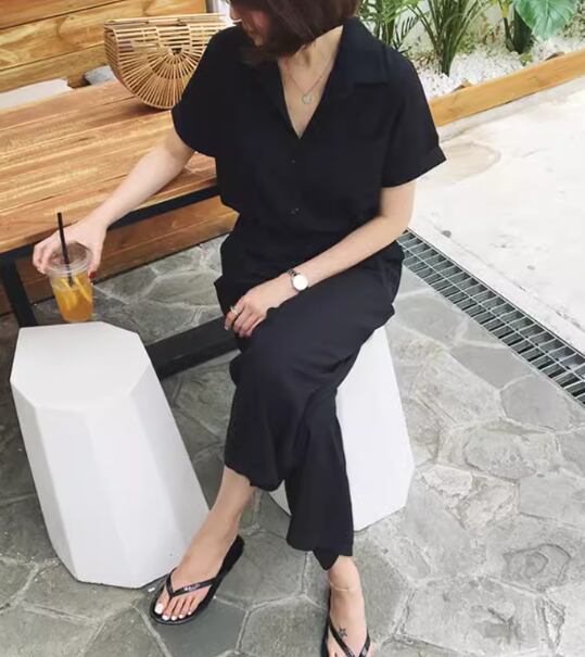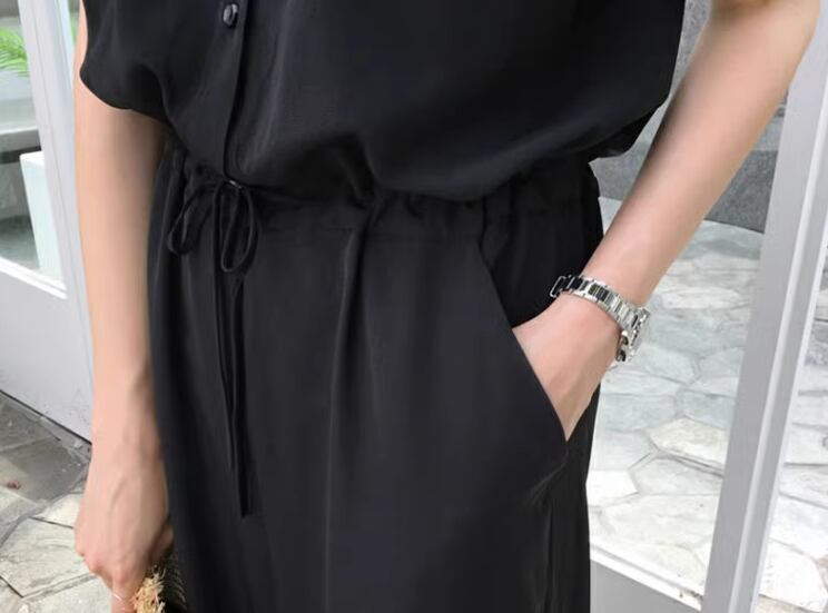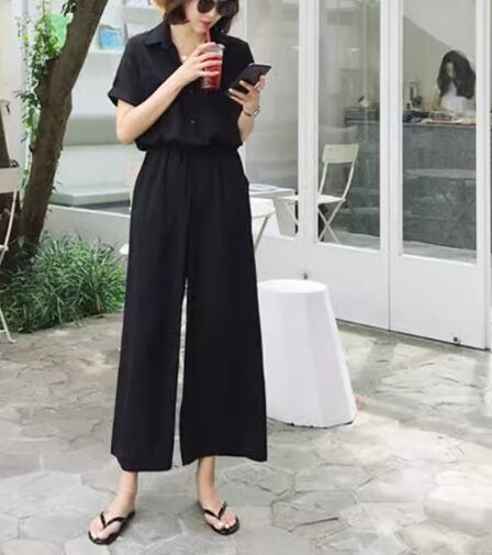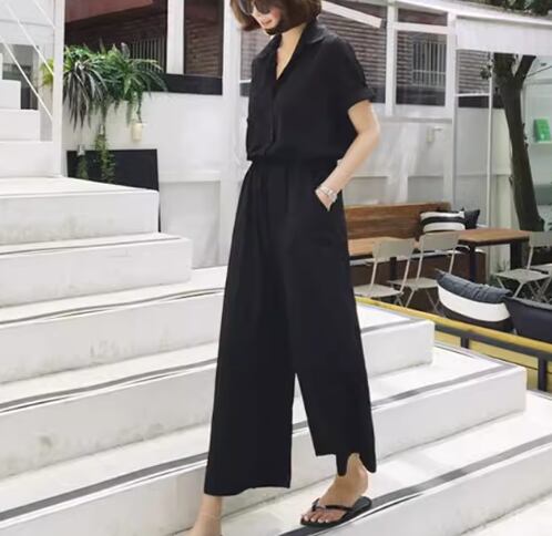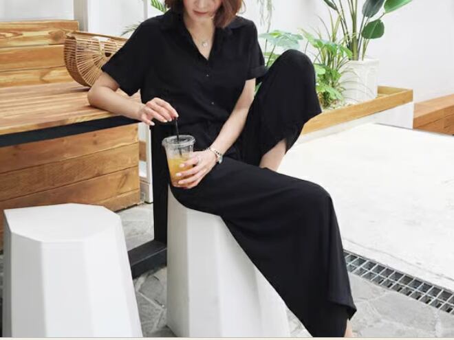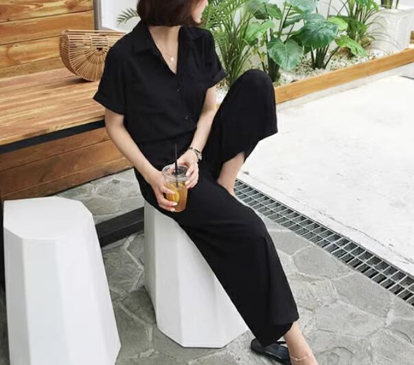 レディース パンツ オールインワン 9分丈 アンクル丈 半袖 Vネック 襟付き ポロカラー ワイド シフォン ウエストマーク ウエストリボン ポケット ボタン 薄手 大人可愛い きれいめ シンプル カジュアル おしゃれ かっこいい こなれ感 ボーイッシュ ルーズ クール エレガント ナチュラル ハンサム シック 高級感 無地 夏 韓国 体型カバー 普段使い S M L XL 大きいサイズ ゆったり ゆる ブラック