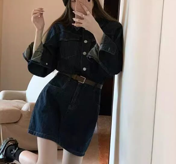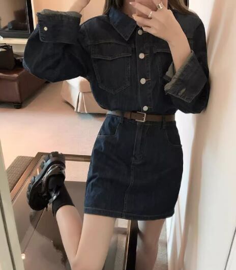 シンプルで洗練されたデザインが魅力的なショート丈のデニムシャツワンピース。
