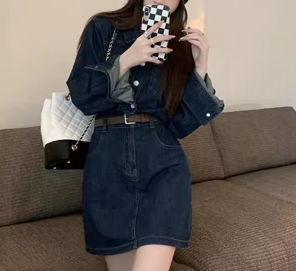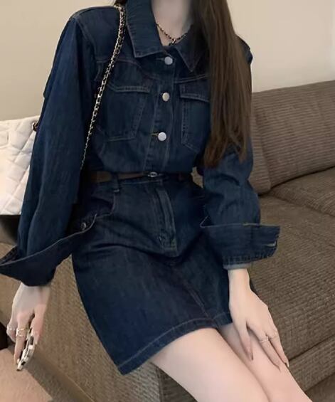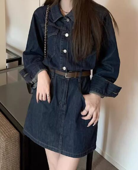 レディース ワンピース シャツワンピ デニム デニムワンピース ミニ ショート 長袖 襟付き ポロカラー Aライン ベルト ウエストマーク ハイウエスト 前開き ボタン ブルーデニム かわいい 大人可愛い シンプル カジュアル おしゃれ こなれ感 キュート ラグジュアリー アクティブ セクシー シック 高級感 無地 秋 冬 10代 20代 学生 デート お出かけ 体型カバー 普段使い S M L ゆったり ブルー