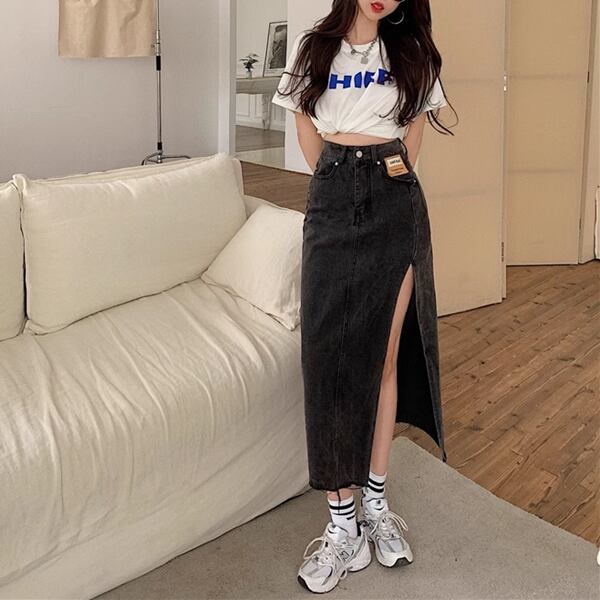 2カラー レディース スカート デニムスカート ヒップカバースカート 膝下 ミモレ スリム Aライン スマート フェミニン サイドスリット ハイウエスト デニム 大人可愛い カジュアル 上品 おしゃれ かっこいい レトロ ラフ ガーリー ルーズ エレガント キュート セクシー オフィスカジュアル 無地 春 夏 秋 ロングシーズン 10代 20代 オフィス 通勤 イベント ガーデン ショッピング カフェ ドライブ 普段使い 着瘦せ