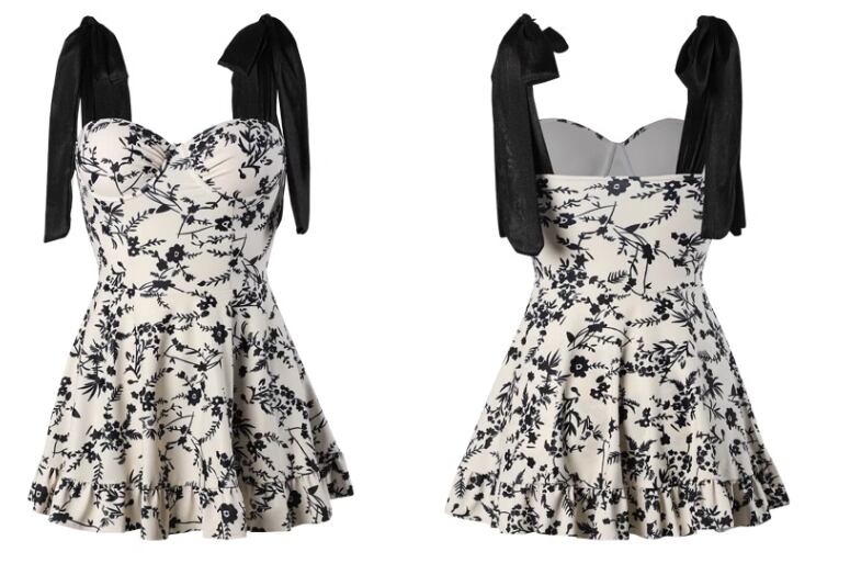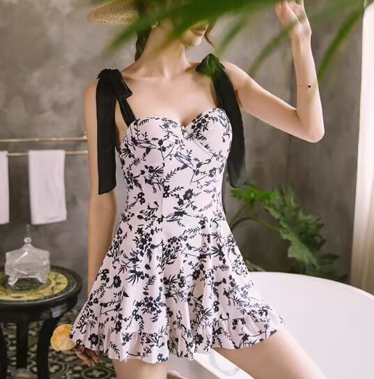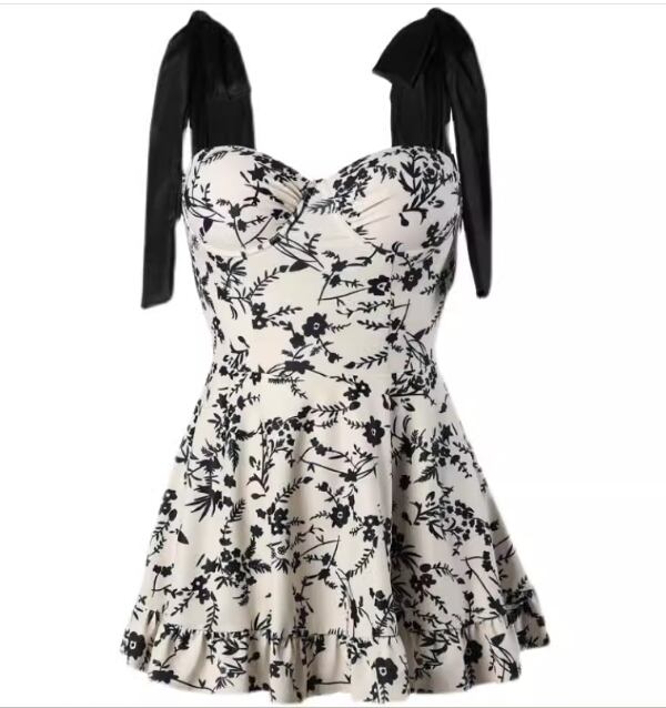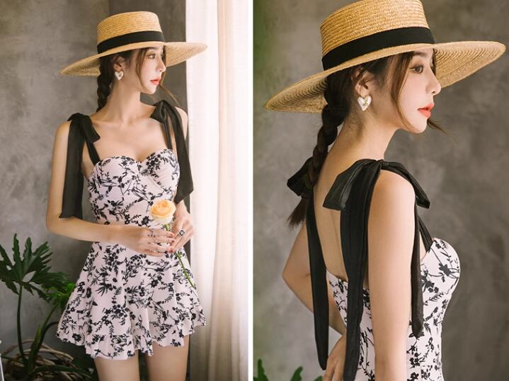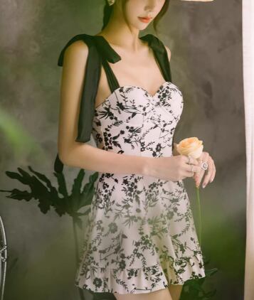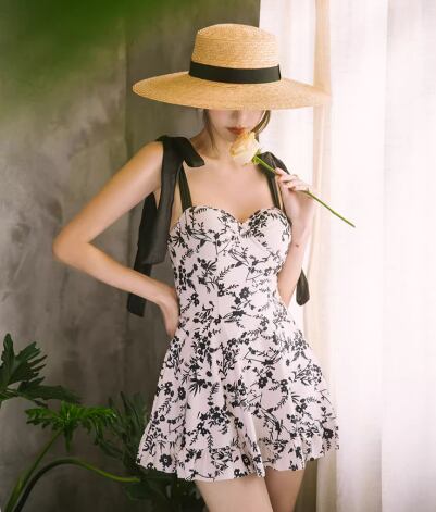 水着 レディース ワンピース スカートスタイル ノンワイヤー パッド付き リボン かわいい 大人可愛い きれいめ カジュアル 華やか 大人っぽい おしゃれ お洒落 キュート ガーリー セクシー フェミニン シック モノトーン 花柄 ボタニカル リゾート 旅行 温泉 プール 夏 海 着痩せ 韓国 体型カバー スタイルカバー お腹カバー M L XL Aカップ Bカップ 貧乳 小さい胸用 小胸さん用 ホワイト