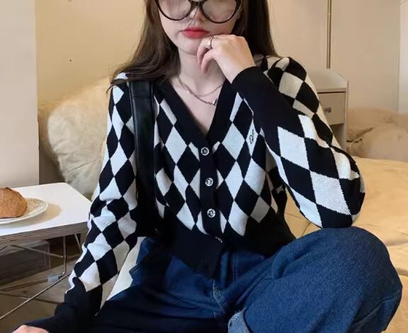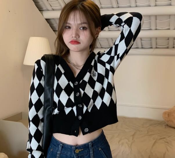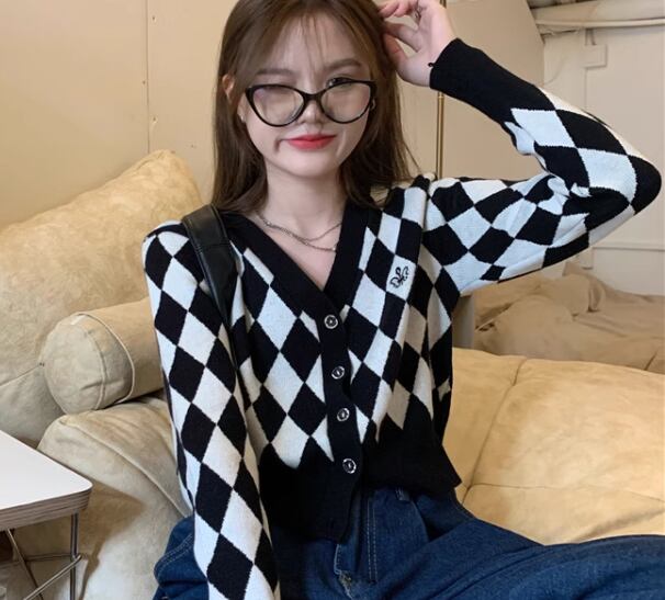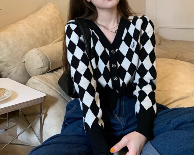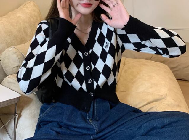 レディース トップス ニット セーター カーディガン ショート クロップド丈 長袖 Vネック 前開き ボタン かわいい 大人可愛い シンプル カジュアル 上品 おしゃれ かっこいい レトロ ボーイッシュ クール エレガント 抜け感 キュート ラグジュアリー ナチュラル 知的 ハンサム シック 高級感 ダイヤ アーガイル 菱形 春 秋 デート お出かけ 普段使い 着回し トレンド 流行 S M L XL 大きいサイズ ブラック