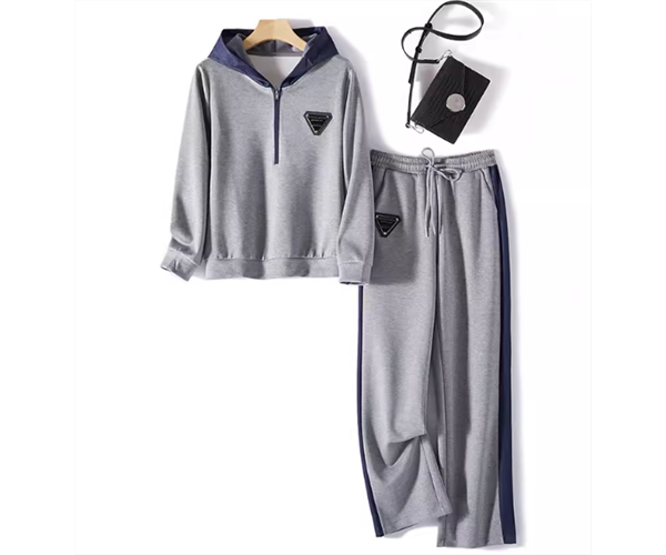 長袖のハーフジップパーカーとフルレングスのパンツの二点セットです。