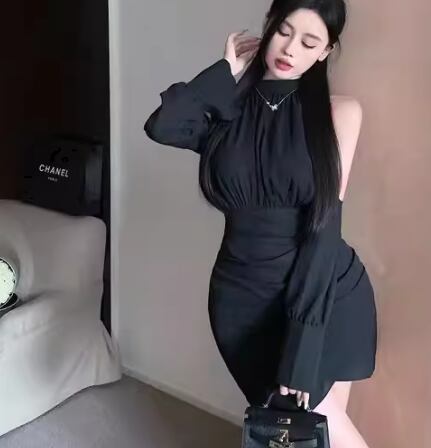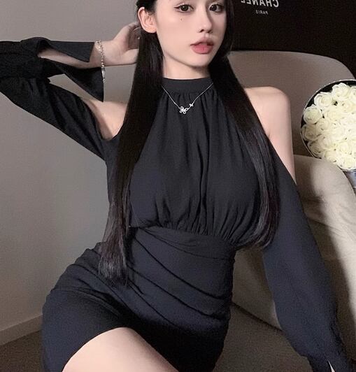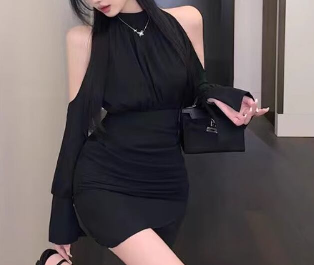 レディース ドレス ワンピース ナイトドレス キャバドレス パーティー ミニ ショート 長袖 ホルターネック オフショル タイト スリム 細身 Aライン ウエストマーク プルオーバー きれいめ シンプル 大人可愛い おしゃれ かっこいい クール エレガント 抜け感 セクシー シック ラグジュアリー 高級感 こなれ感 無地 イベント ホテル レストラン デート 食事会 春 秋 キャバ S M L 小さめ フィット ブラック