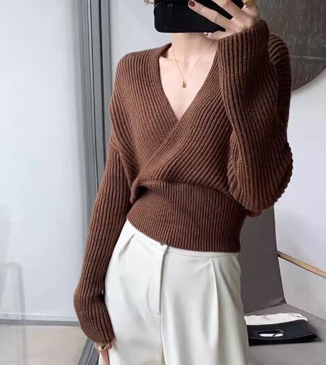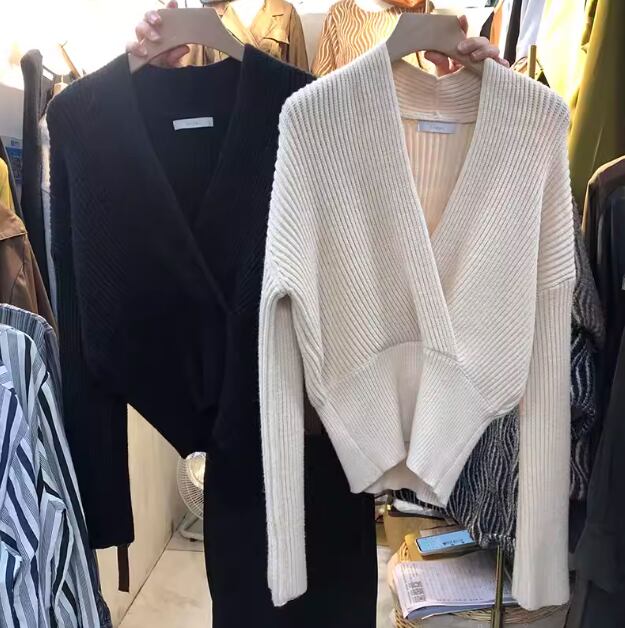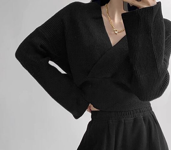 レディース トップス ニット セーター プルオーバー ショート クロップド丈 長袖 ドロップショルダー Vネック カシュクール ストレート ウエストマーク 厚手 大人可愛い きれいめ シンプル カジュアル おしゃれ かっこいい こなれ感 ラフ ボーイッシュ クール エレガント 抜け感 ラグジュアリー ナチュラル ハンサム シック 高級感 無地 秋 冬 デート お出かけ 普段使い 着回し フリーサイズ ホワイト ブラック ブラウン グレー