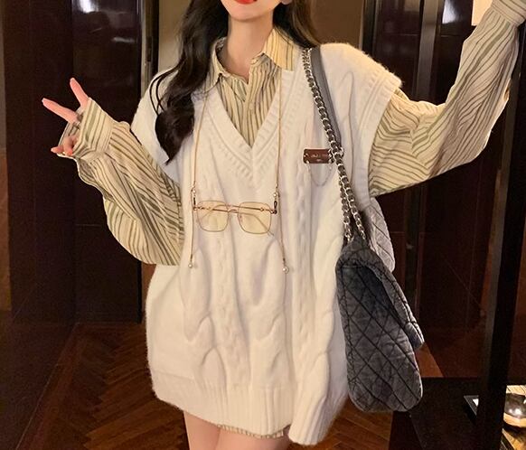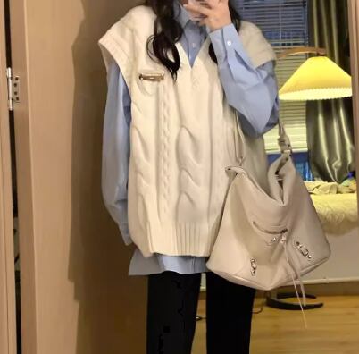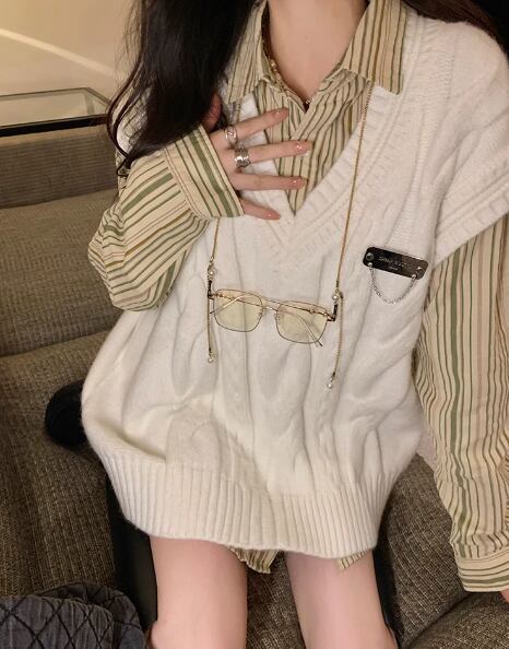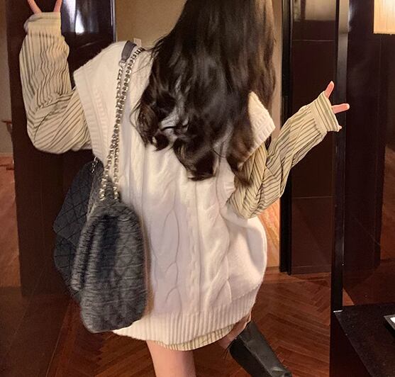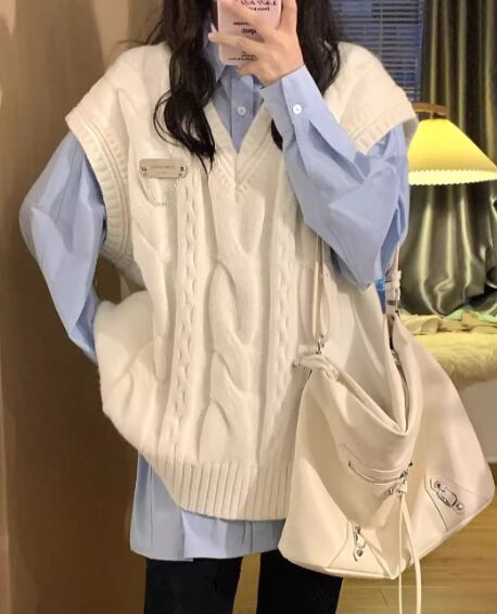 レディース トップス ニット プルオーバー ベスト ミドル丈 袖なし ノースリーブ Vネック ケーブルニット かわいい 大人可愛い シンプル カジュアル おしゃれ レトロ ボーイッシュ ルーズ エレガント ラグジュアリー ナチュラル ハンサム シック 高級感 春 秋 デート お出かけ 重ね着 韓国 体型カバー 普段使い 着回し レイヤード トレンド 流行 S M L XL 大きいサイズ ゆったり ゆる 大きめ オーバーサイズ ホワイト