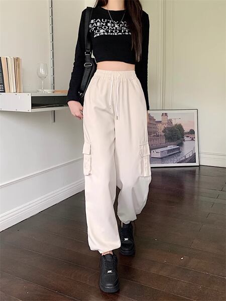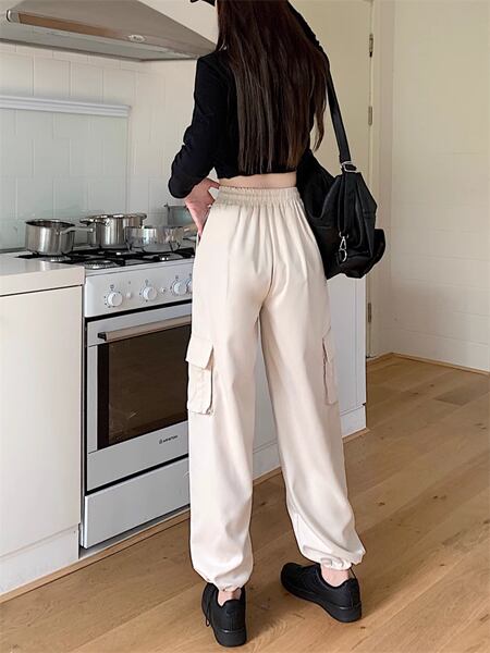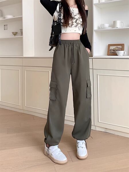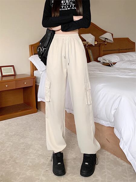夏にぴったりのワイドレッグカジュアルワークパンツ。ハイウエストでストレートなシルエットが魅力。薄手の素材で涼しく、レトロな雰囲気を漂わせる。大きいサイズの女性にもフィットし、痩身効果も期待できる一着。リラックス感とおしゃれを両立したカジュアルです。
