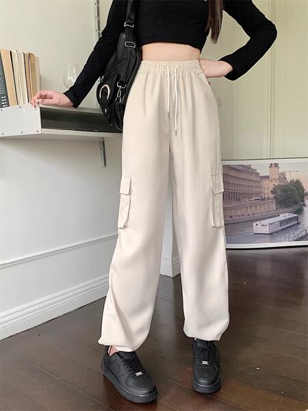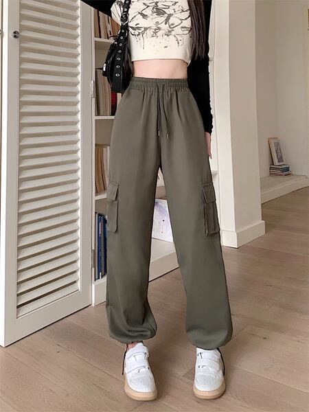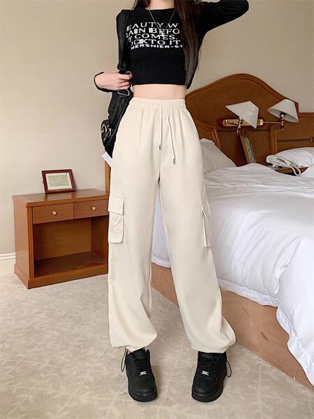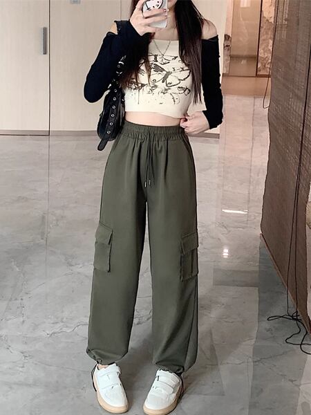 3カラー ワイドレッグカジュアルワークパンツ レディース パンツ ボトムス ロングパンツ ワークパンツ カーゴパンツ ロング ストレート ストリート ハイウエスト ドロスト ポケット 薄手 大人可愛い シンプル カジュアル おしゃれ かっこいい レトロ ルーズ アメリカン ポップ ドレープ 無地 シーズンレス 10代 20代 通勤 アウトドア キャンプ イベント ガーデン ライブ ツーリング 動きやすい 着瘦せ