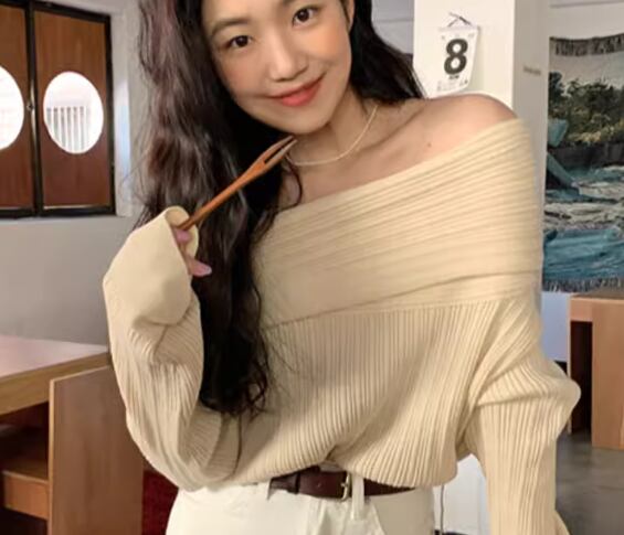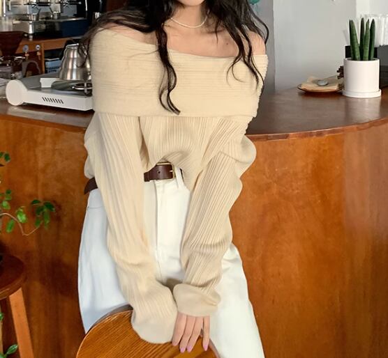 レディース トップス ニット セーター プルオーバー ミドル丈 長袖 オフショルダー フェミニン 異国風 かわいい 大人可愛い きれいめ シンプル カジュアル おしゃれ こなれ感 ルーズ 抜け感 ラグジュアリー ナチュラル セクシー シック 高級感 春 デート お出かけ 韓国 体型カバー 普段使い 着回し モテ トレンド 流行 ゆったり ゆる フリーサイズ 大きめ オーバーサイズ ブラック アプリコット