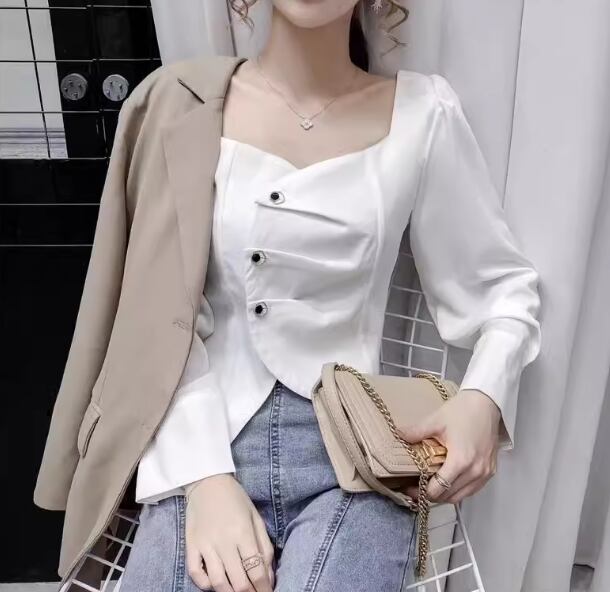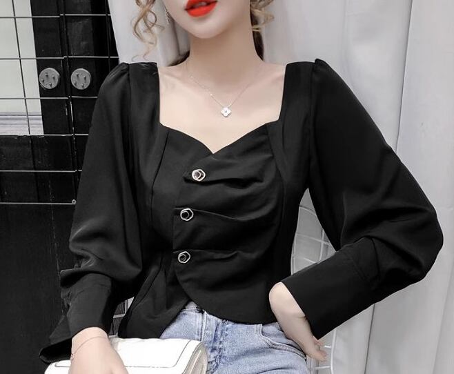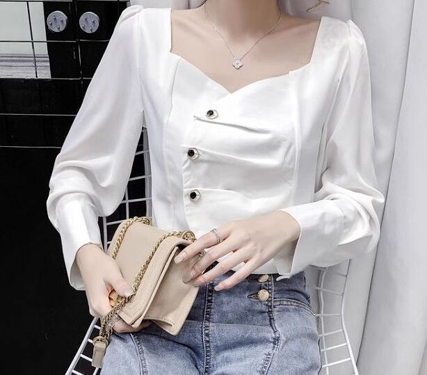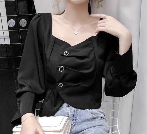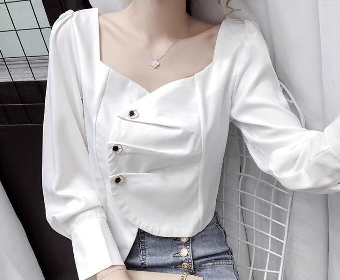 レディース トップス シャツ ショート クロップド丈 長袖 ボリューム袖 パフスリーブ バルーン袖 ランタンスリーブ スクエアネック フェミニン ボタン かわいい 大人可愛い きれいめ シンプル カジュアル おしゃれ かっこいい こなれ感 個性的 クール エレガント ラグジュアリー ハンサム シック 高級感 無地 春 秋 デート お出かけ 普段使い 着回し S M L XL 大きいサイズ ホワイト ブラック