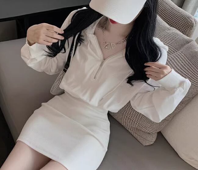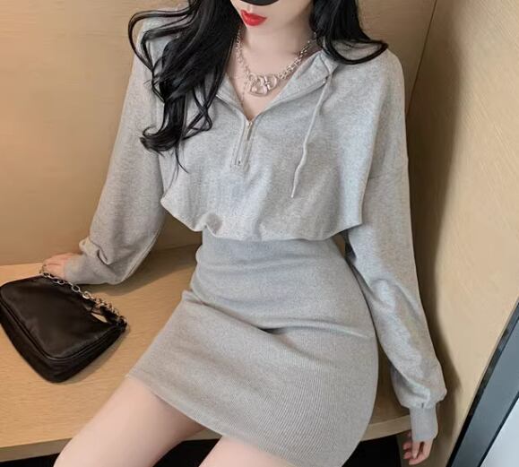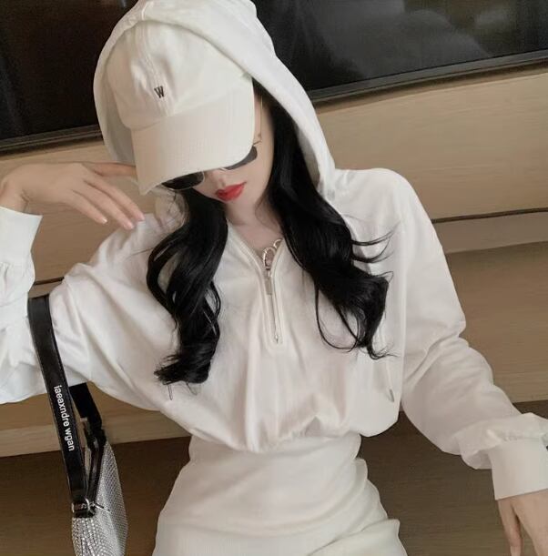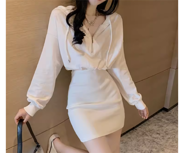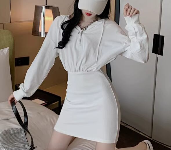 スウェット風 レディース ワンピース プルオーバー ミニ ショート 長袖 パフスリーブ ドロップショルダー タイト スリム 細身 Aライン ストリート ファスナー フード かわいい 大人可愛い シンプル カジュアル おしゃれ かっこいい レトロ こなれ感 ラフ スポーティー クール ラグジュアリー セクシー 無地 春 秋 冬 10代 20代 学生 デート お出かけ 普段使い フリーサイズ ホワイト ブラック グレー