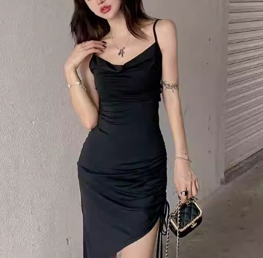 レディース ワンピース プルオーバー キャミワンピース 膝丈 アシンメトリー ミドル丈 左右非対称 イレギュラー 袖なし ノースリーブ タイト スリム 細身 Aライン 背中開き ハイウエスト かわいい 大人可愛い きれいめ シンプル カジュアル おしゃれ かっこいい こなれ感 ラフ 個性的 クール エレガント 抜け感 ラグジュアリー セクシー 無地 夏 デート お出かけ パーティー イベント 普段使い S M L 小さめ フィット ブラック