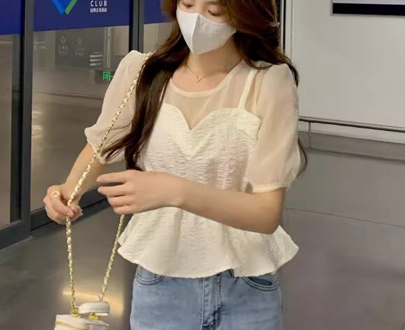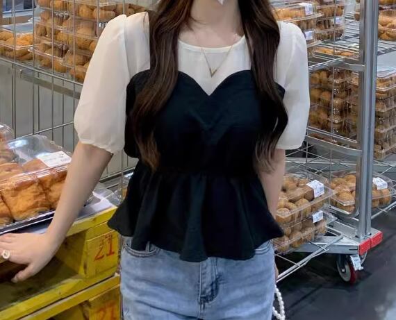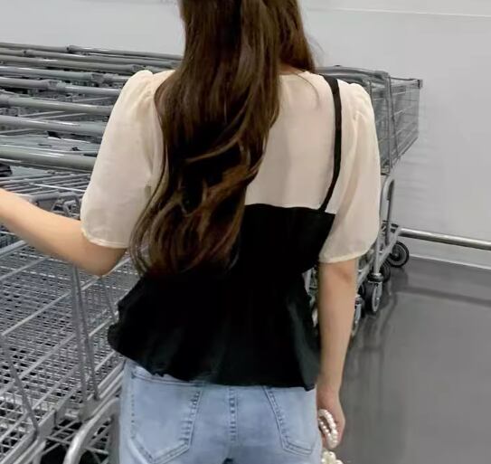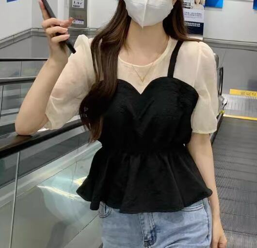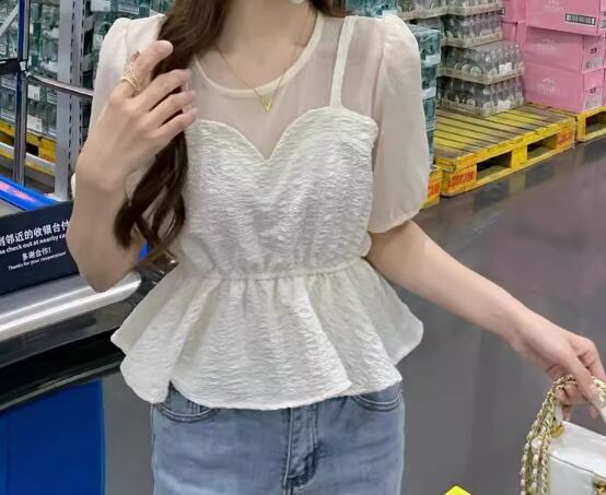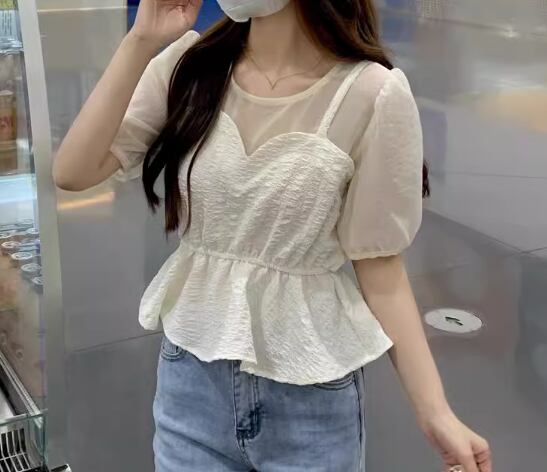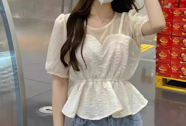 重ね着風 フェイクツーピース レディース トップス カットソー プルオーバー Tシャツ ショート クロップド丈 半袖 ラウンドネック ペプラム フェミニン ウエストマーク ハイウエスト かわいい 大人可愛い きれいめ シンプル カジュアル 上品 おしゃれ ガーリー キュート シック 高級感 優しい 穏やか フェアリー 無地 夏 デート お出かけ 普段使い 着回し 清楚 S M L ホワイト ブラック