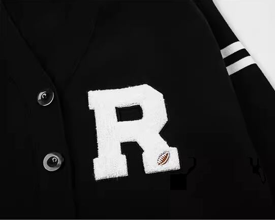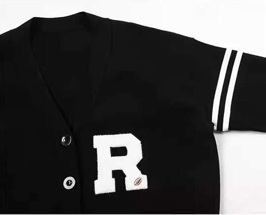 レディース トップス ニット カーディガン ミドル丈 長袖 Vネック 刺繍 前開き 異国風 ボタン かわいい 大人可愛い シンプル カジュアル おしゃれ かっこいい レトロ ボーイッシュ ルーズ クール エレガント キュート ラグジュアリー カレッジ風 学生風 ナチュラル 文字 テキスト 英語 ワンポイント 春 秋 10代 20代 学生 デート お出かけ 普段使い 着回し S M L ゆったり ゆる 大きめ ブラック