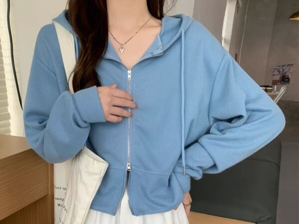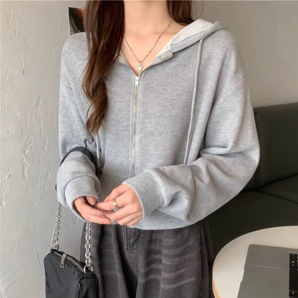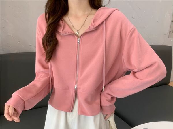 春と秋に最適なフード付きスウェットシャツ。スリムフィットで体型を美しく引き立て、ショートジャケットとしても活躍。暖かく快適な着心地で、季節の変わり目のスタイリングにぴったりです。