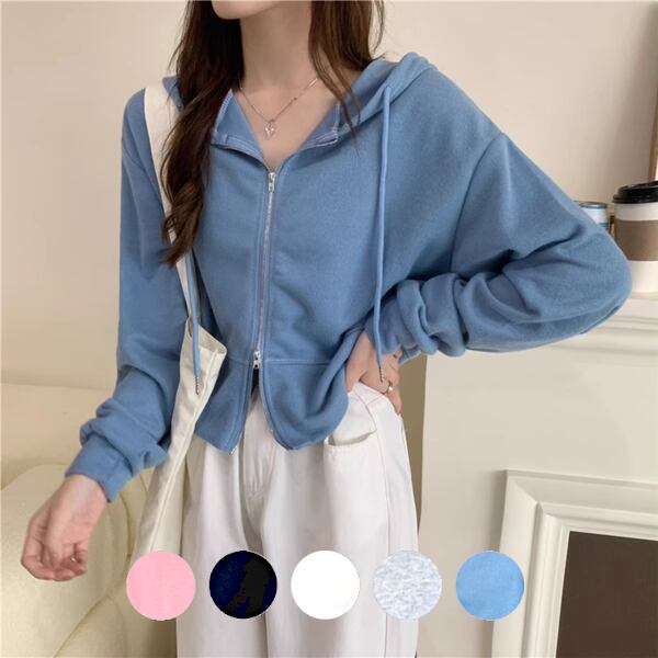 全5色 フード付きスウェットシャツ ダブルジップパーカー レディース トップス ジャケット パーカー スウェット ジャージ アウター 上着 スポーツウェア 長袖 フード セミフレア ストレート ファスナー かわいい 大人可愛い シンプル カジュアル おしゃれ ラフ ルーズ 学生風 無地 春 秋 OL 通勤 学生 アウトドア キャンプ イベント ガーデン ショッピング ライブ ツーリング ランニング 普段使い 動きやすい
