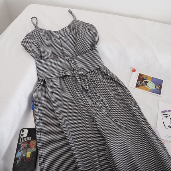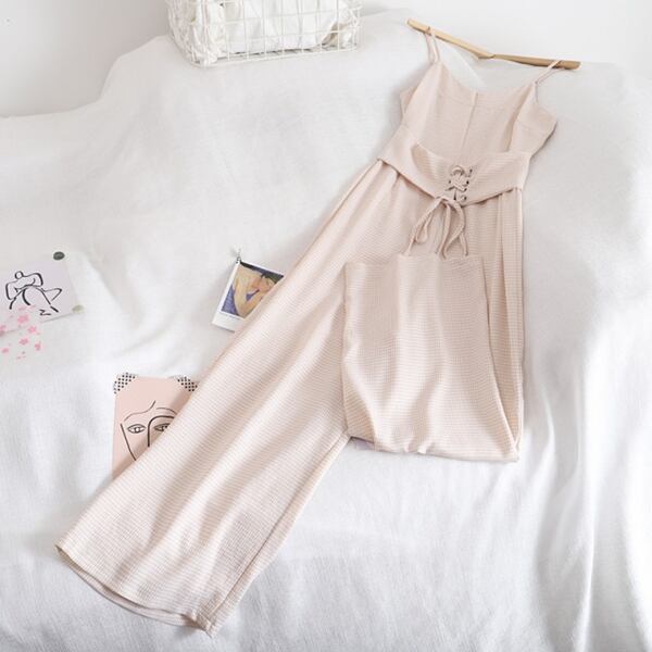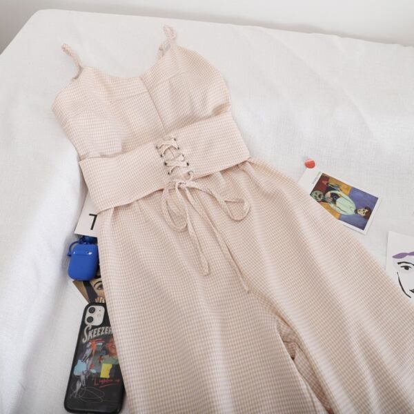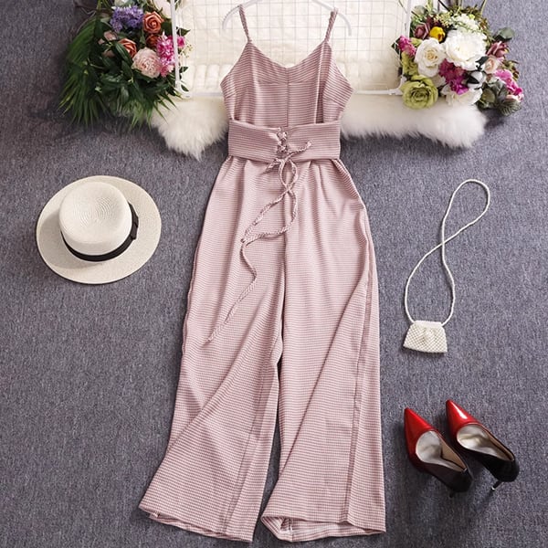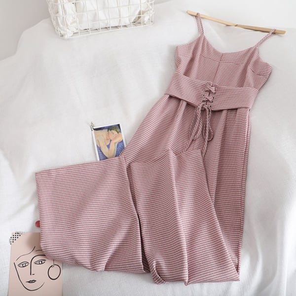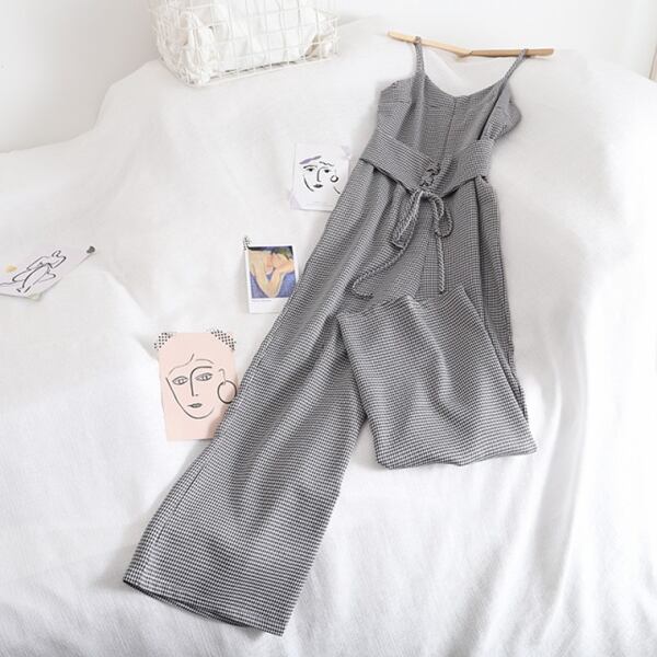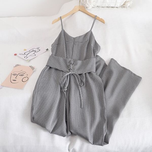 ヴィンテージな雰囲気漂うヨーロッパとアメリカンスタイルのレトロファッション。チェック柄のバックレスVネックトップ&ワイドレッグパンツのジャンプスーツ。洗練された魅力を身に纏い、華やかな一歩を・・・・。