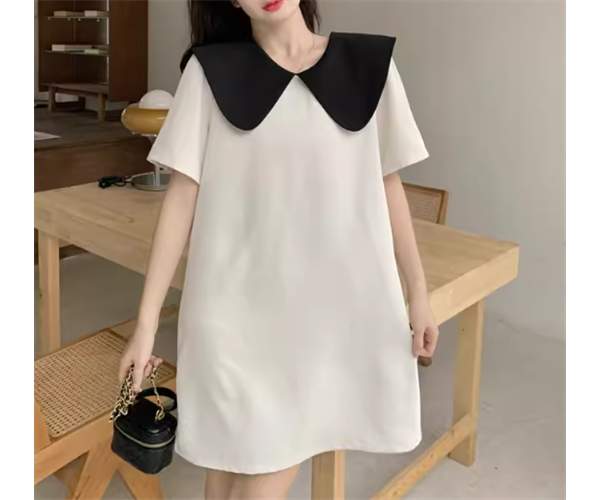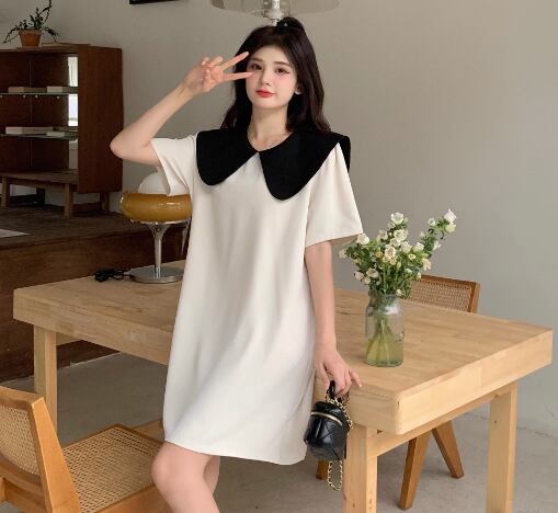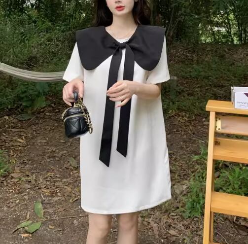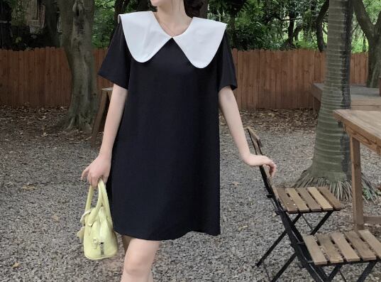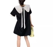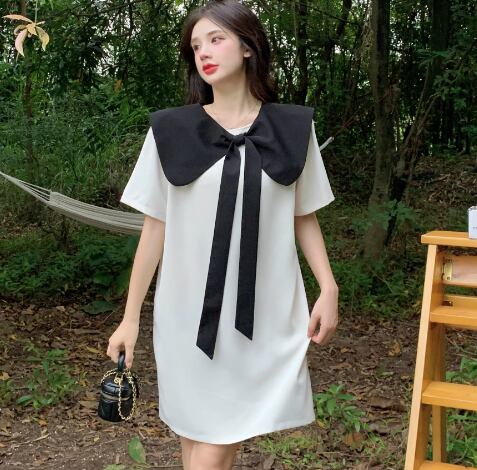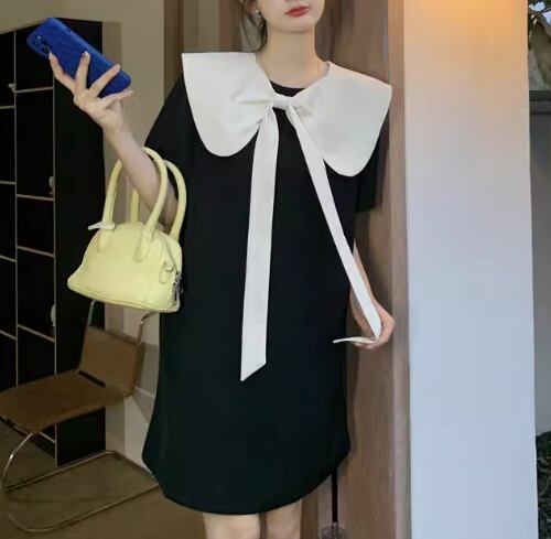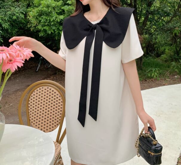 レディース ワンピース プルオーバー ミニ ショート 膝丈 半袖 襟付き ビッグカラー Aライン フェミニン リボン バックリボン かわいい 大人可愛い きれいめ シンプル カジュアル おしゃれ レトロ ラフ ガーリー ルーズ ラブリー キュート ラグジュアリー ナチュラル シック 高級感 無地 夏 10代 20代 学生 デート お出かけ 体型カバー 普段使い 清楚 M L XL ゆったり ホワイト ブラック