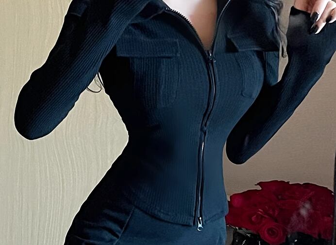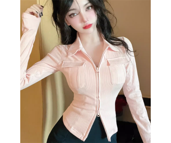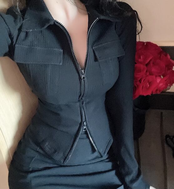 レディース トップス カットソー ニット セーター ショート クロップド丈 長袖 Vネック 襟付き ポロカラー タイト スリム 細身 ファスナー かわいい 大人可愛い シンプル カジュアル おしゃれ かっこいい こなれ感 ボーイッシュ ガーリー クール エレガント キュート ラグジュアリー セクシー 無地 秋 デート お出かけ 普段使い 着回し 着瘦せ S M L XL 小さめ フィット ブラック ピンク