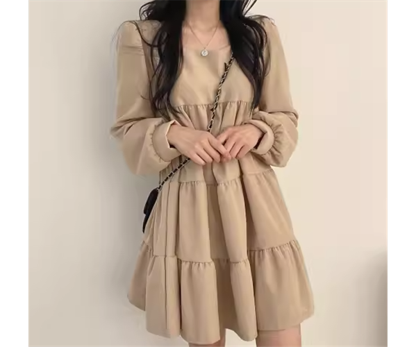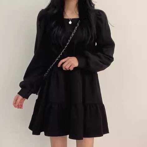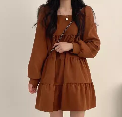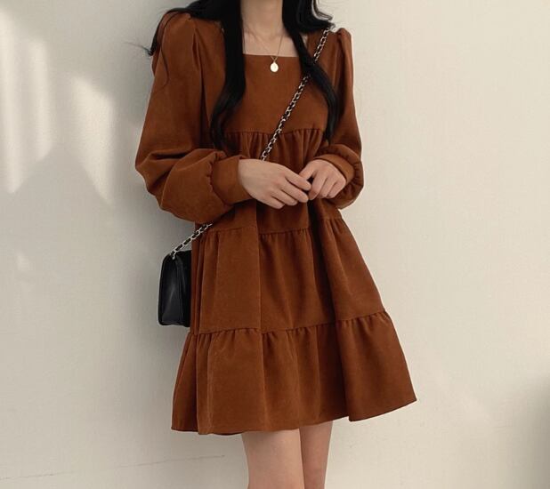 レディース ワンピース プルオーバー ミニ ショート 膝丈 ミドル丈 長袖 パフスリーブ スクエアネック Aライン ティアード フェミニン 異国風 かわいい 大人可愛い きれいめ シンプル カジュアル おしゃれ レトロ ガーリー ルーズ キュート ナチュラル シック 高級感 無地 春 秋 デート お出かけ 韓国 体型カバー 普段使い 清楚 フリーサイズ ゆったりウエスト ブラック ブラウン アプリコット