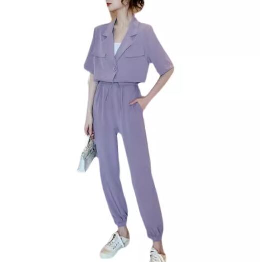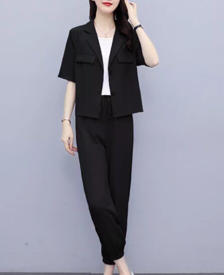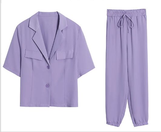 半袖のショート丈ジャケットとアンクル丈のパンツの二点セットです。