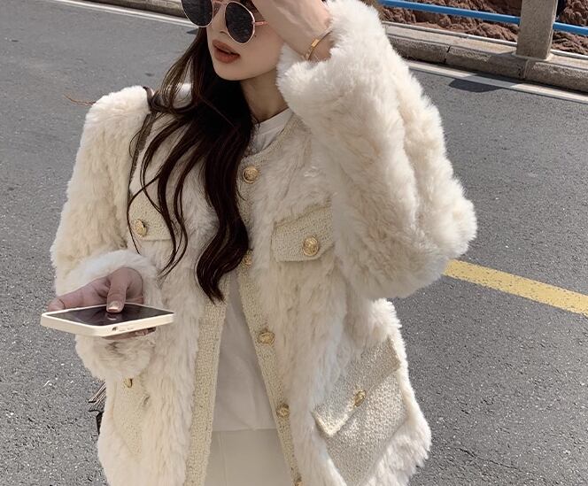 もこもこ、ふわふわの極上の手触りが魅力的なミドル丈のノーカラーコート。