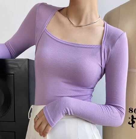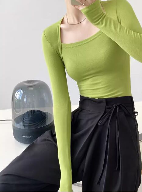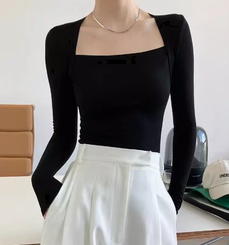 レディース トップス カットソー Tシャツ ミドル丈 長袖 スクエアネック タイト スリム 細身 異国風 かわいい 大人可愛い シンプル カジュアル おしゃれ かっこいい ボーイッシュ 個性的 クール ラグジュアリー セクシー ハンサム シック 高級感 スタイリッシュ 無地 秋 デート お出かけ 韓国 普段使い 着回し フリーサイズ 小さめ フィット ホワイト ブラック グリーン パープル