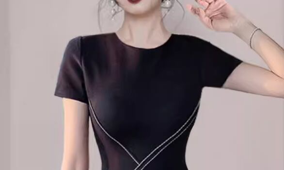 シンプルで洗練されたデザインとタイトなシルエットが大人っぽい半袖の膝丈ワンピース。