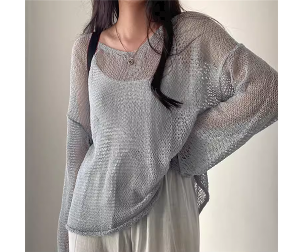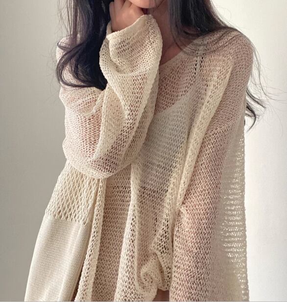 優しくて柔らかい色味が魅力的な夏用の長袖ニットセーター。