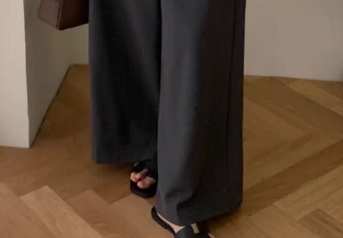 体の肉感を拾いにくいワイドストレートパンツなのもうれしいポイント。