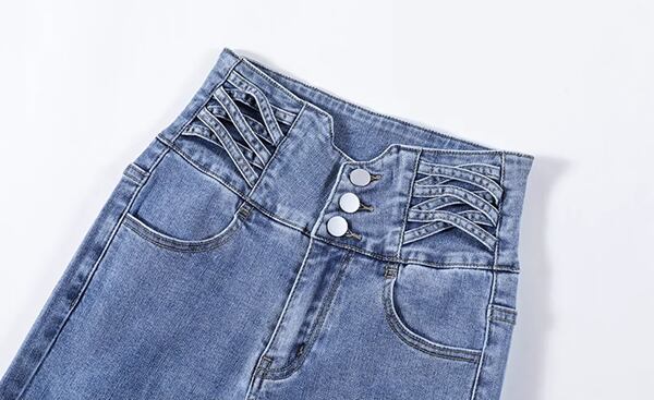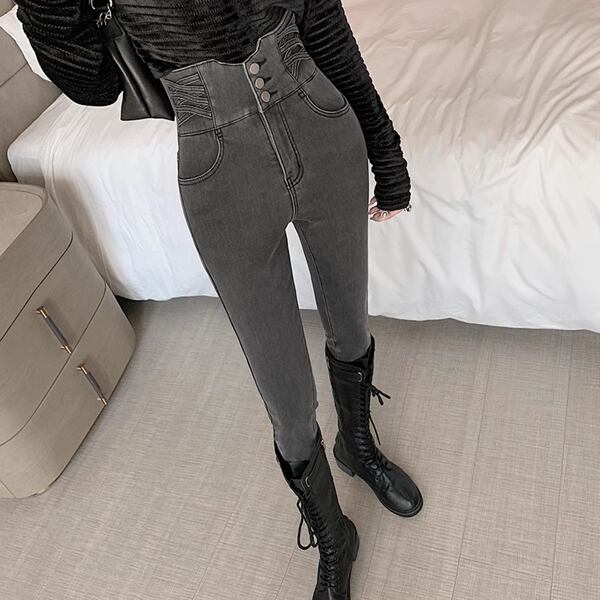 ハイウエストジーンズでありながら、痩身効果をもたらすペンシルパンツ。お腹を引き締め、ヒップアップ効果も。ストレッチ素材で快適な着心地を提供します。