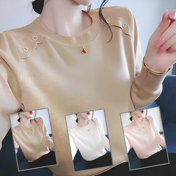 全3色 新しいスタイルの長袖ニット レディース ボトム シャツ トップス ニット セーター 長袖 ラウンドネック クルーネック スクープカラー ストレート ヘッジ パッチ 大人可愛い きれいめ カジュアル 上品 クール モード系 エレガント フォーマル 知的 オフィスカジュアル リブニット 無地 春 秋 ロングシーズン プレゼン 20代 30代 オフィス OL 通勤 イベント ホテル ショッピング フェス