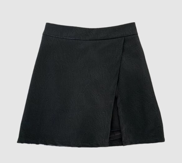 シンプルでスタイリッシュなデザインがかっこいいショート丈のレザースカート。