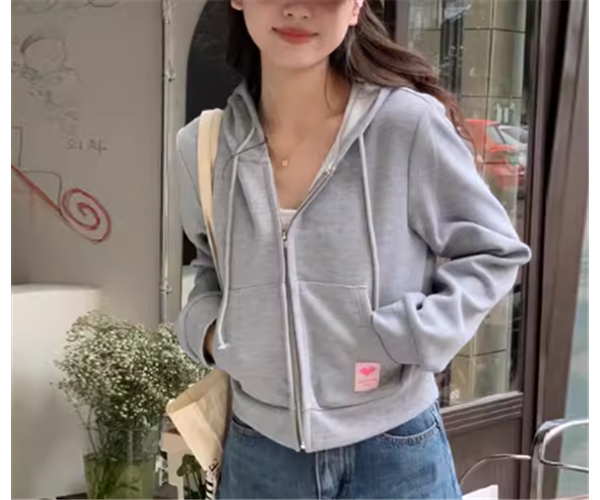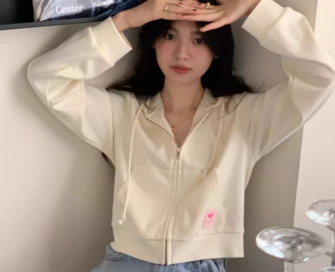 上品で落ち着いた色味が大人可愛いショート丈の長袖パーカー。