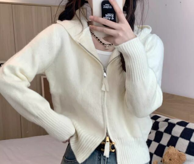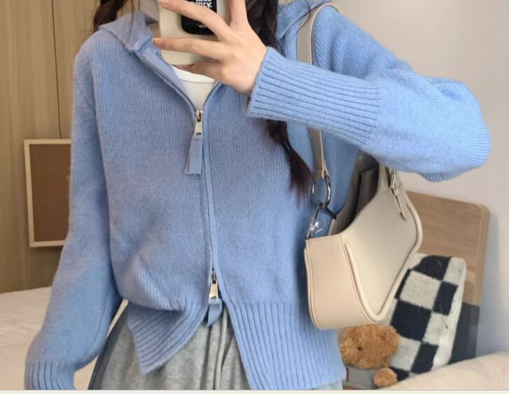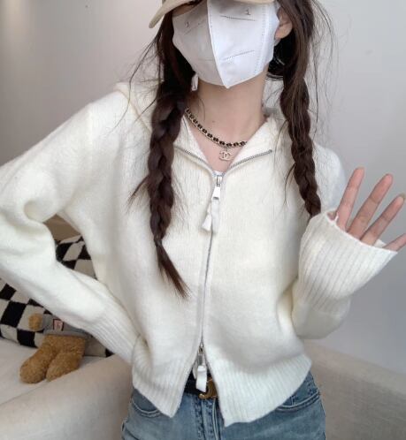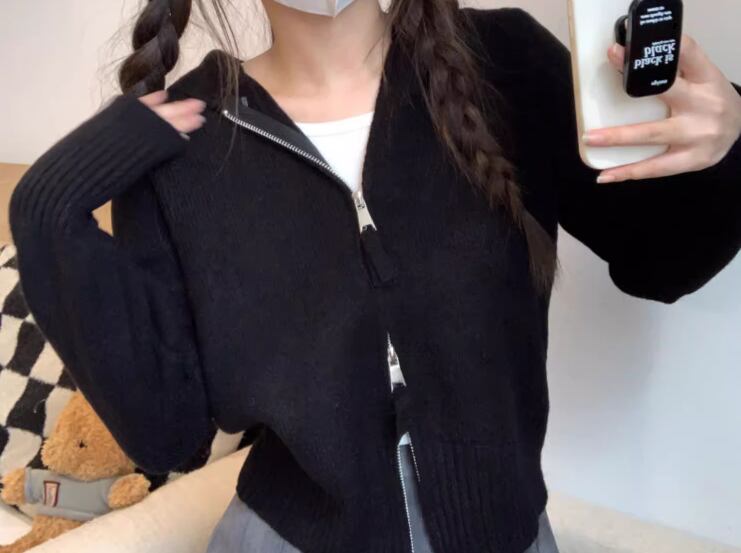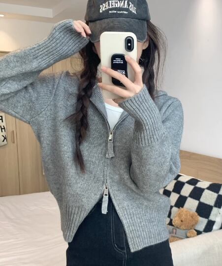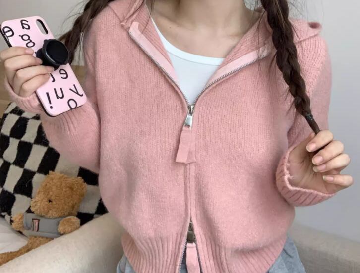 レディース トップス ニット セーター パーカー ショート クロップド丈 長袖 ファスナー 前開き かわいい 大人可愛い シンプル カジュアル おしゃれ かっこいい レトロ ラフ ボーイッシュ スポーティー ガーリー クール キュート ナチュラル ハンサム シック 高級感 スタイリッシュ 優しい 穏やか 無地 春 普段使い 着回し フリーサイズ ホワイト ブラック グレー ピンク ブルー