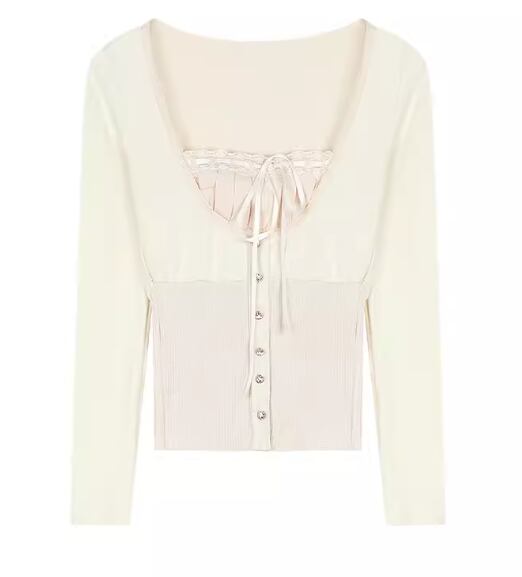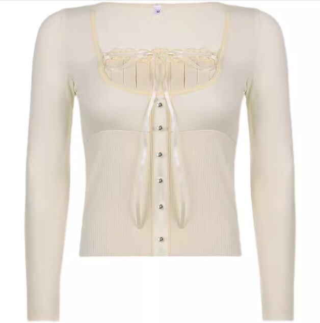 レースやリボンといったガーリーな要素が魅力的な長袖トップス。