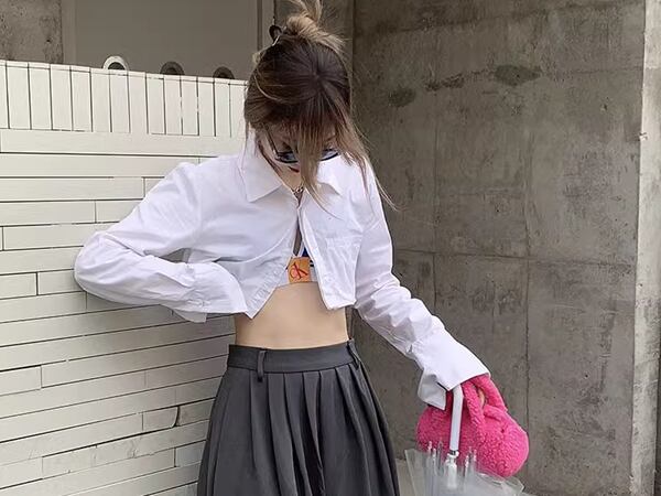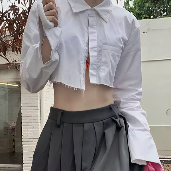 モダンなヨーロッパとアメリカのスタイルを融合した、非対称なデザインが特徴のショートシャツ。シンプルでありながら個性的な一枚。無地で長袖のストリートウェアとして、カジュアルな装いに適しています。