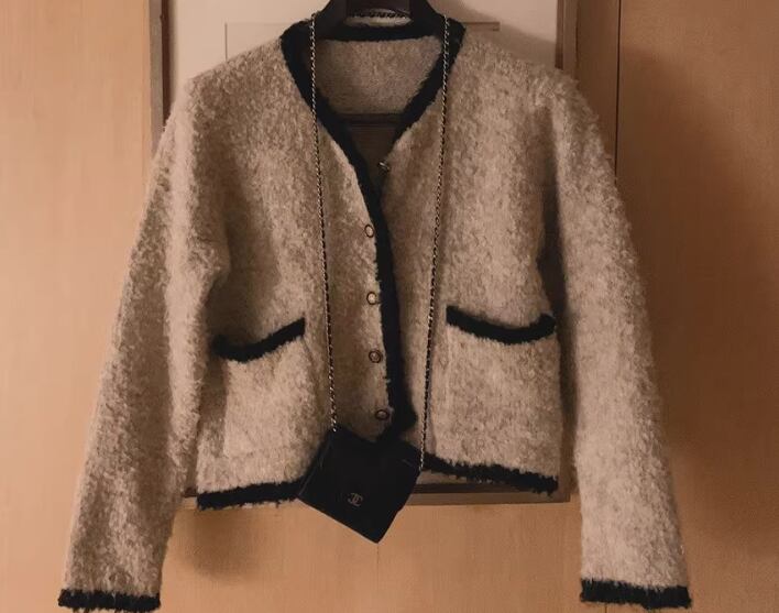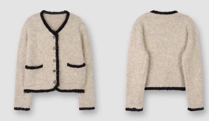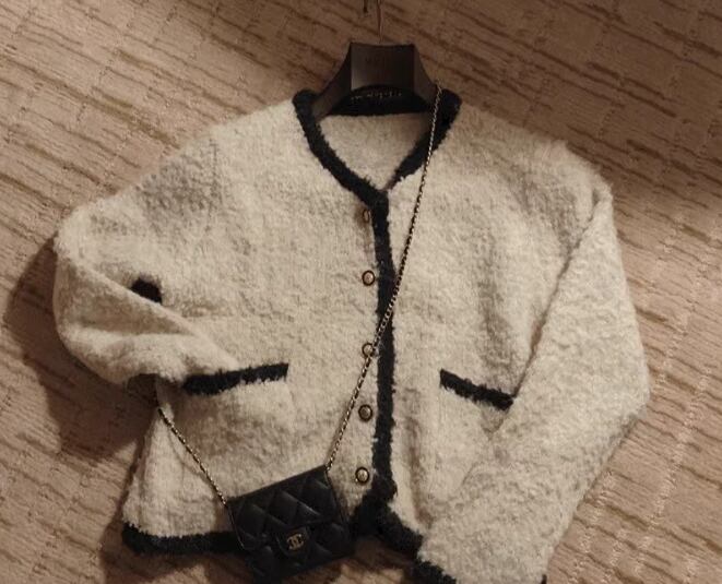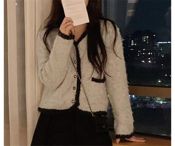 シックなカラーの二色使いが大人可愛い長袖のノーカラージャケット。
