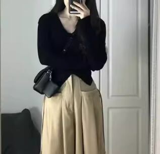 レディース トップス ニット セーター カーディガン ショート クロップド丈 ミドル丈 長袖 Vネック 前開き ボタン 大人可愛い きれいめ シンプル カジュアル 上品 おしゃれ かっこいい レトロ クール エレガント ベーシック ナチュラル ハンサム シック 高級感 スタイリッシュ 優しい 穏やか 無地 秋 冬 デート お出かけ 普段使い 着回し 定番 S M L XL 大きいサイズ ブラック