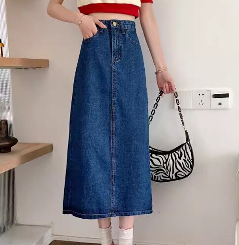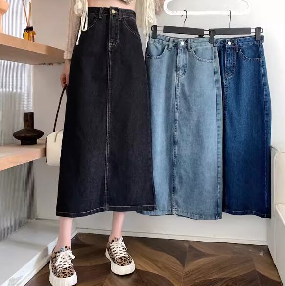 レディース スカート デニムスカート ロングスカート ミモレ ロング Aライン フェミニン バックスリット ファスナー ポケット ハイウエスト ボタン ダメージ デニム ブルーデニム カラーデニム かわいい 大人可愛い きれいめ シンプル カジュアル 上品 おしゃれ レトロ ガーリー エレガント キュート 無地 春 秋 デート お出かけ 脚長 普段使い 着回し S M L XL 大きいサイズ ブラック ブルー ネイビー