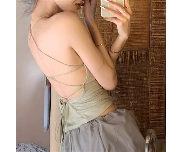 レディース トップス キャミソール インナー ショート クロップド丈 袖なし ノースリーブ ホルターネック スリム 細身 背中開き 編み上げ レースアップ 胸パッド付き かわいい 大人可愛い シンプル カジュアル おしゃれ かっこいい こなれ感 ラフ セクシー 無地 夏 10代 20代 学生 デート お出かけ リゾート 旅行 海 プール ビーチ 普段使い 着回し フリーサイズ 小さめ ホワイト ブラック グリーン