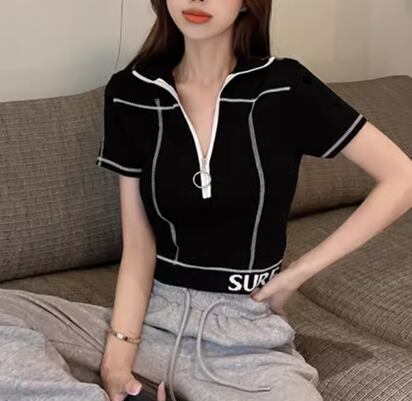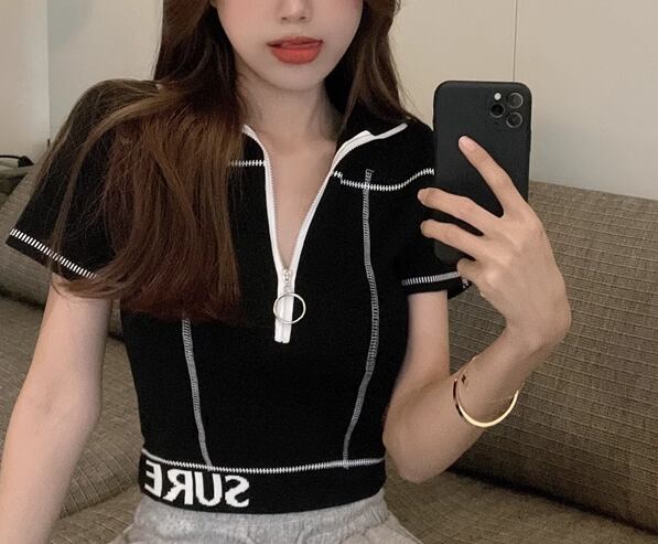 レディース トップス カットソー ニット セーター プルオーバー ショート クロップド丈 半袖 スタンドカラー ファスナー かわいい 大人可愛い きれいめ シンプル カジュアル おしゃれ かっこいい レトロ こなれ感 ラフ ボーイッシュ スポーティー クール 抜け感 キュート ラグジュアリー 夏 10代 20代 学生 デート お出かけ 普段使い 着回し M L XL 大きいサイズ ホワイト ブラック